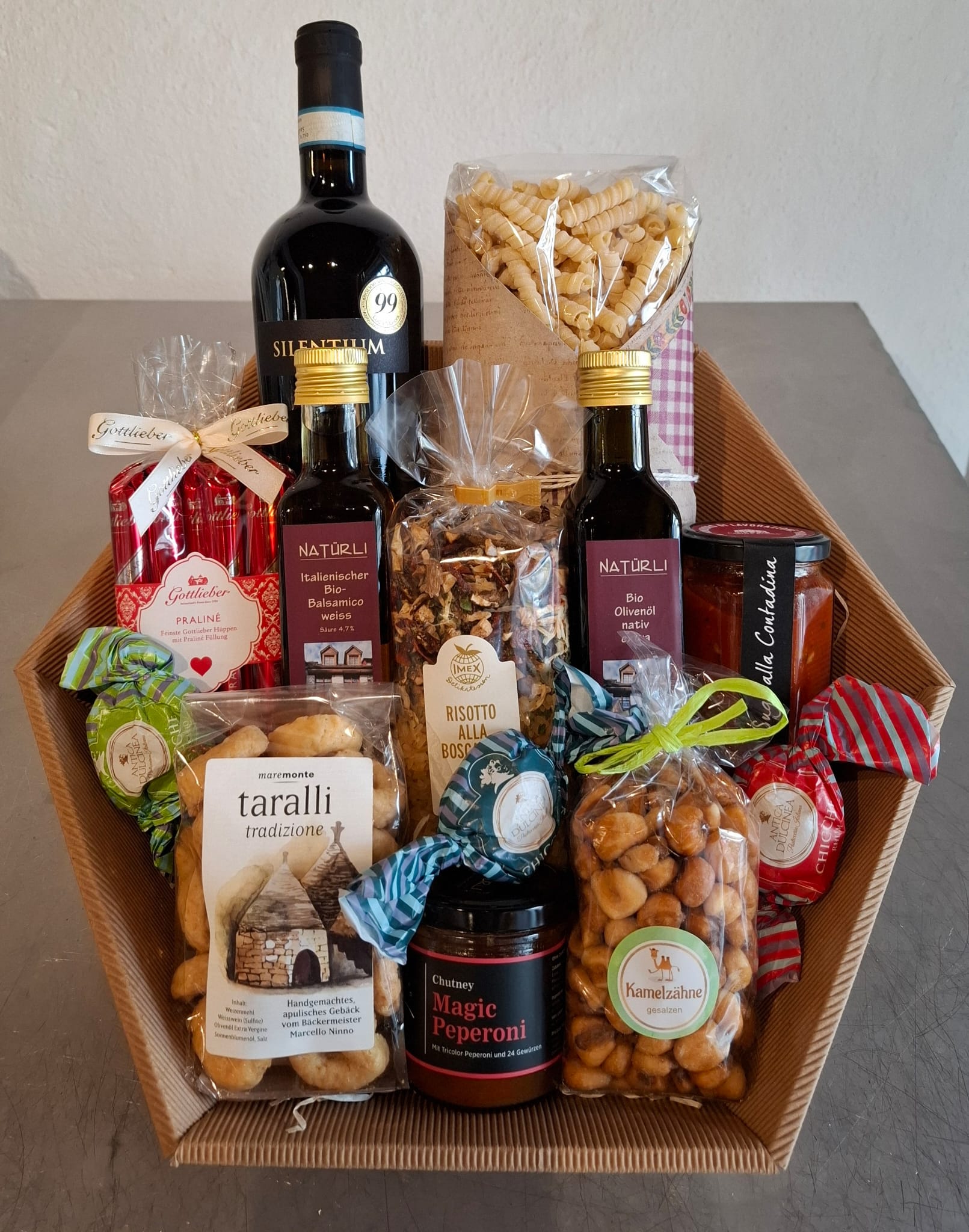 NATÜRLI Geschenkkorb mit feinen, regionalen Spezialitäten. Individuell nach Ihren Wünschen zusammengestellt oder ähnlich der Abbildung. (Nicht für den Versand geeignet)